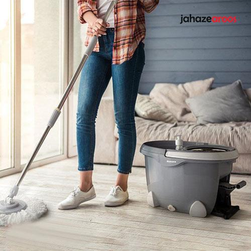 ست سطل و زمین شوی چرخشی همارا مدل 7071: با استفاده از این محصول به راحتی می توانید کف آشپزخانه، سرویس بهداشتی و حمام را مورد شستشو قرار دهید. این محصول دارای سری های قابل تعویض بوده و جنس سری آن طنابی میباشد. به دلیل اینکه این محصول دارای یک سطل آب گیری بر روی بدنه می باشد، کار آبگیری تی و شستشوی آن با سهولت راحتی بیشتری انجام میپذیرد و با استفاده از آن می توانید به راحتی محیط های مختلف را تمیز کنید.