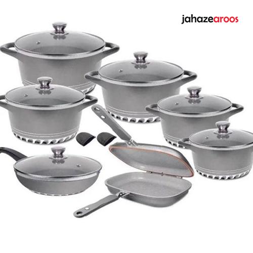 سرویس قابلمه گرانیتی ۱۷ پارچه کف رینگی MGS – رنگ نوک مدادی