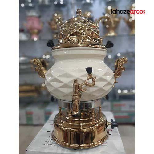 سماور گازی ۶لیتر مدل عدسی کرم طلایی