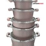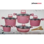 4 عدد قابلمه به همراه درب اختصاصی + 1 عدد تابه دو دسته به همراه درب اختصاصی + 1 عدد کفگیر چوبی نسوز + 1 عدد قاشق چوبی نسوز |