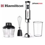 گوشت کوب برقی 3 کاره همیلتون با توان 1200 وات جنس بدنه استیل و پلاستیک با کیفیت و جنس تیغه و میله استیل ضد زنگ میباشد . رنگ این گوشت کوب برقی مشکی نقره ای و اقلام همراهش بلندر ، خردکن و همزن است .این گوشت کوب برقی با موتور AC دارای نشانگر ال ای دی با طراحی پیشرفته و مدرن ساخته شده است که شما با خیال راحت میتوانید این محصول را از جهاز عروس خریداری کنید.
